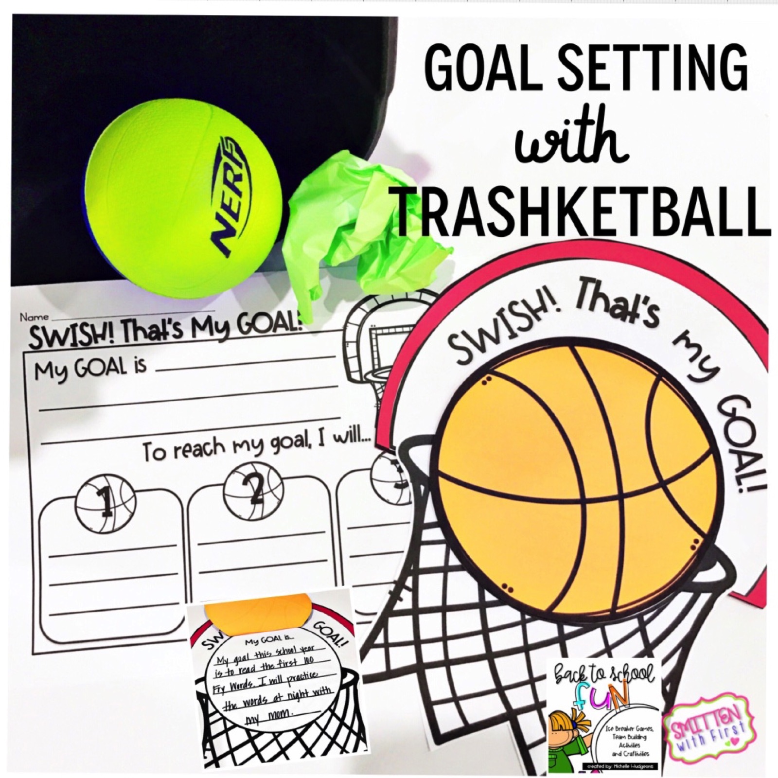 Next up is a fun goal setting activity with Trashketball! Students line up in front of a trash can, state their learning goal and one thing they plan to do to help reach that goal, and then throw the ball (or crumbled paper) into the basket.