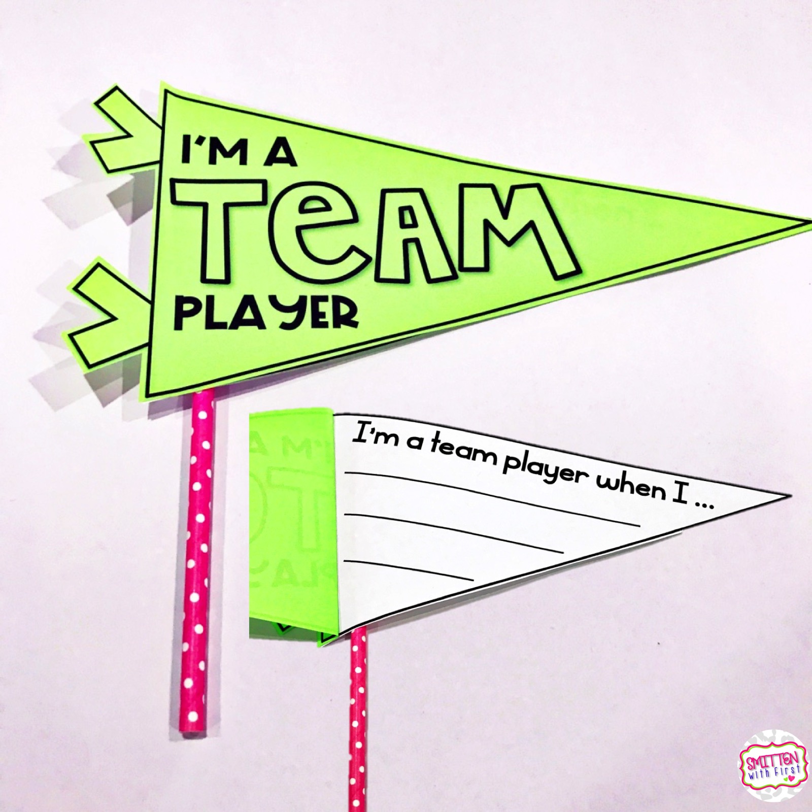As a follow up to discussing being a team, students can complete this team pennant and write about being a team player. These can be displayed around the chart and stay up all year long! Any time someone is not being a team player, refer to the Social Contract.