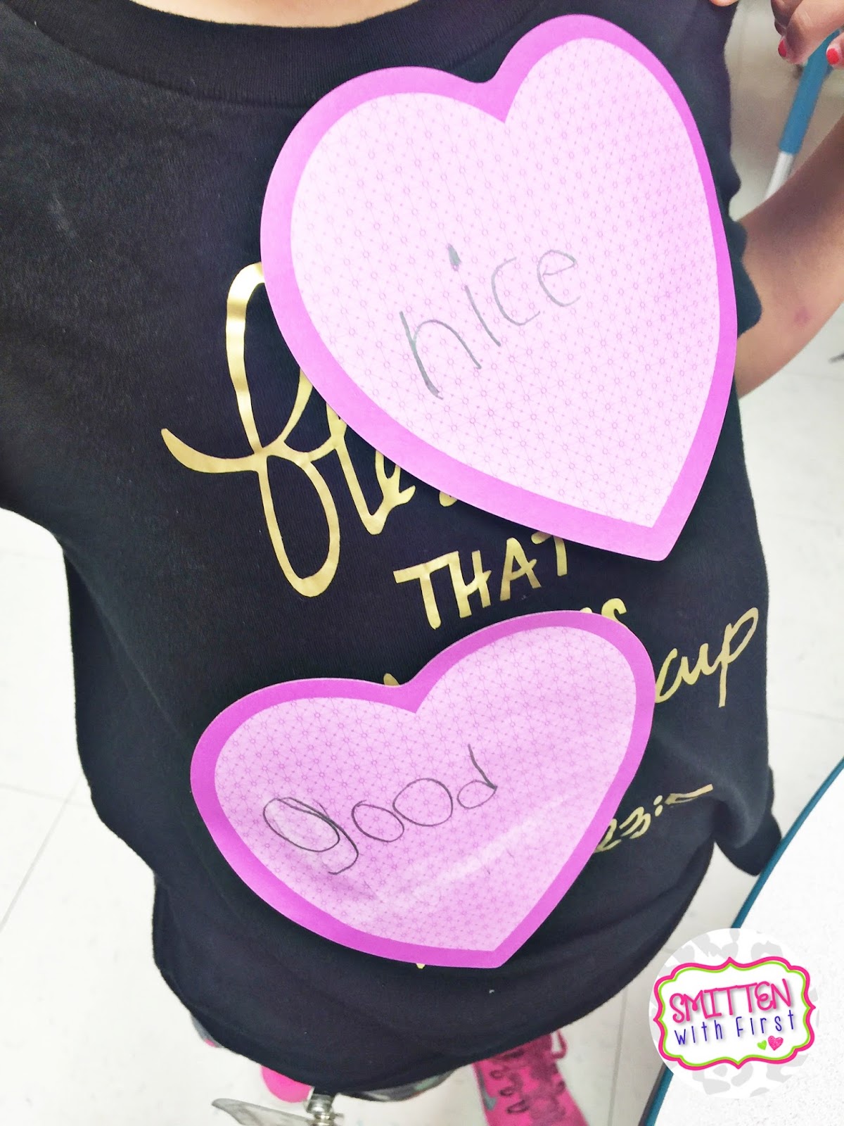 I wrote down the inside traits on a heart sticky note and outside traits on a regular sticky note.